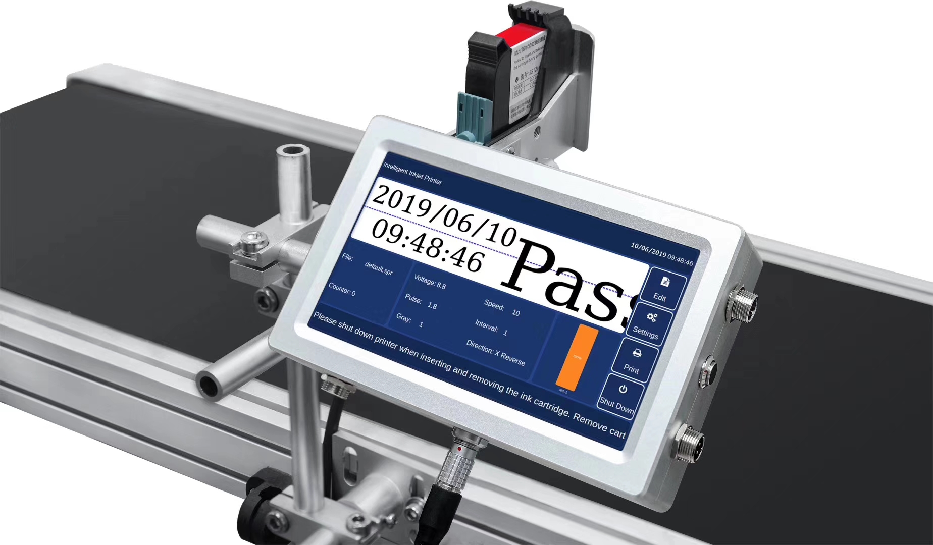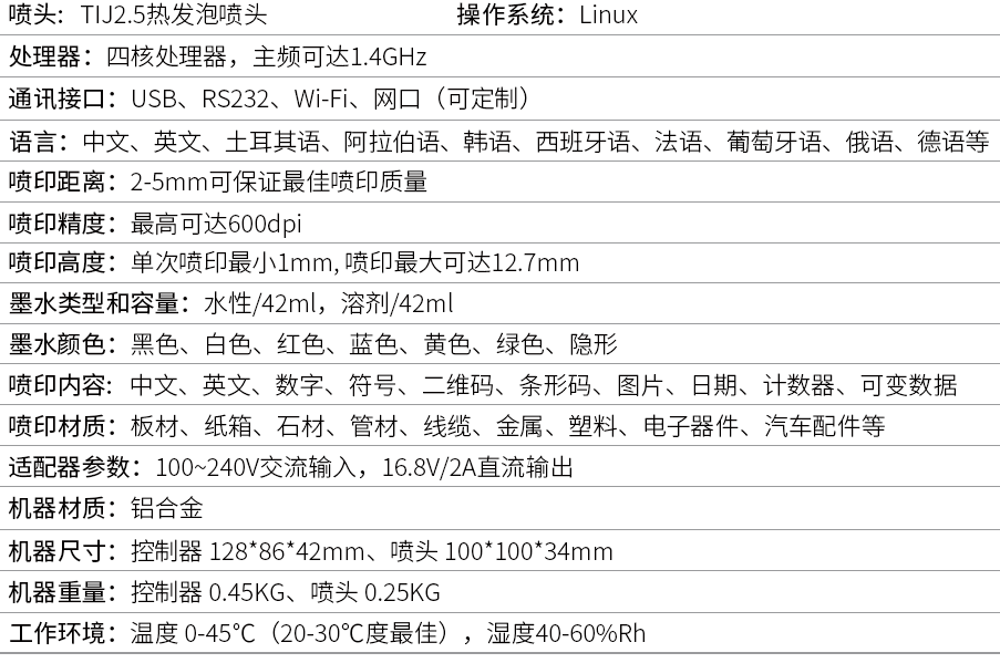 专为包装喷码而设计,可喷印高分辨率的的文本、数字、符号、图片和各种一/二维码等固定或可变信息,能配合各类包装线、流水线、生产平台进行喷码标识生产。